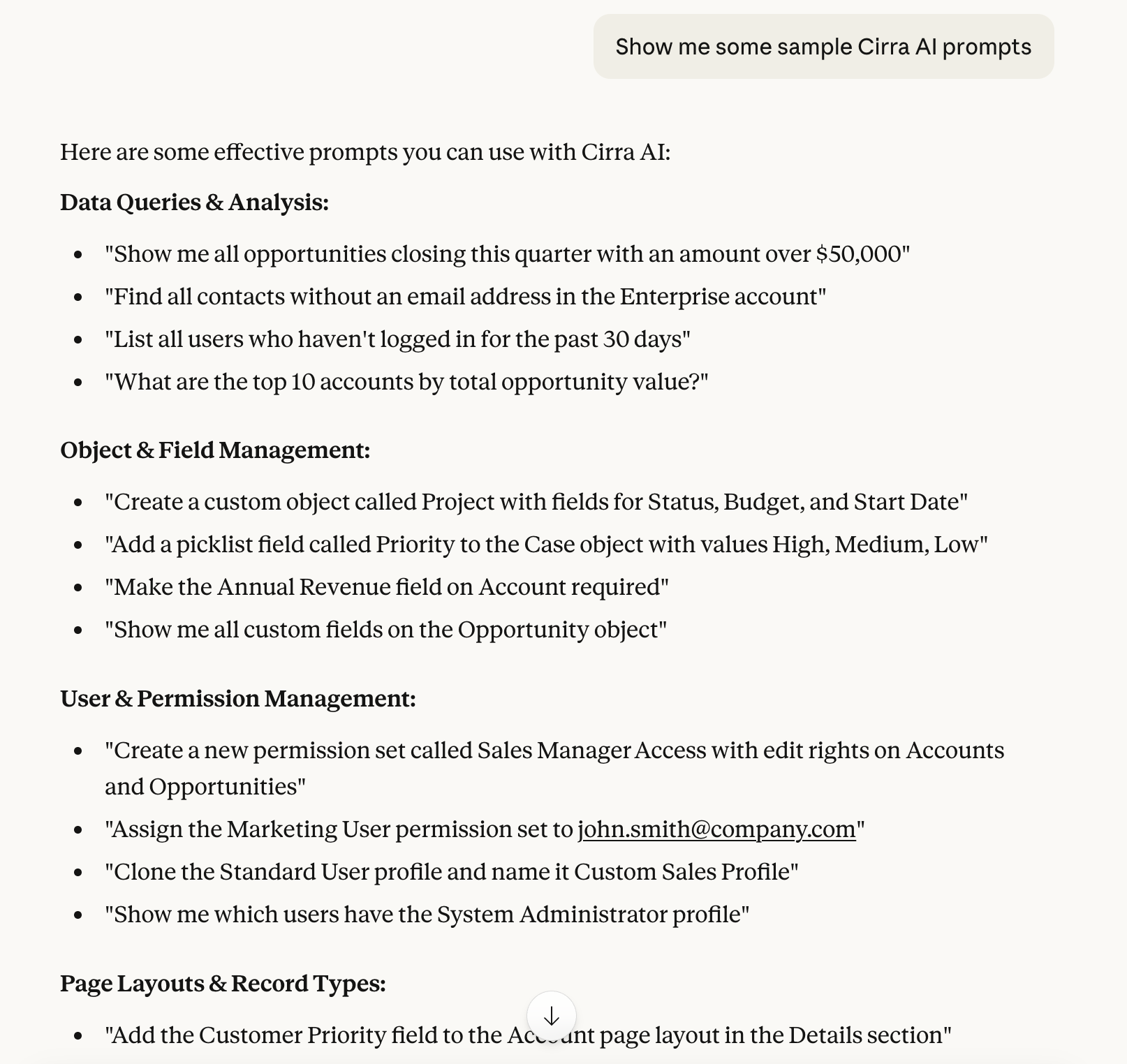 If that happens, it helps to mention Salesforce or Cirra AI in the prompt, as in