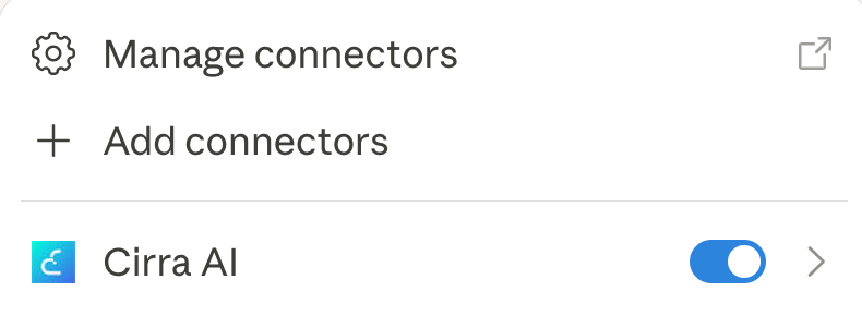 The connection to the Cirra AI MCP Server was not successful Redo the steps under Connecting to your AI client and return here after.